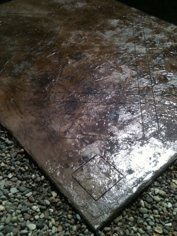 A stamped overlay can be used indoors or outdoors to recreate